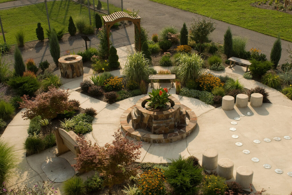 About this Sacred Place The Healing Garden is nestled behind the Tate Cancer Center at the Baltimore Washington Medical Center. Surrounded by lush, grass terraces intricately landscaped with bushes and trees, and beside two rectangle reflection ponds, the outdoor seating area is incredibly serene. This communal gathering space sits upon hundreds of bricks, dedicated by…